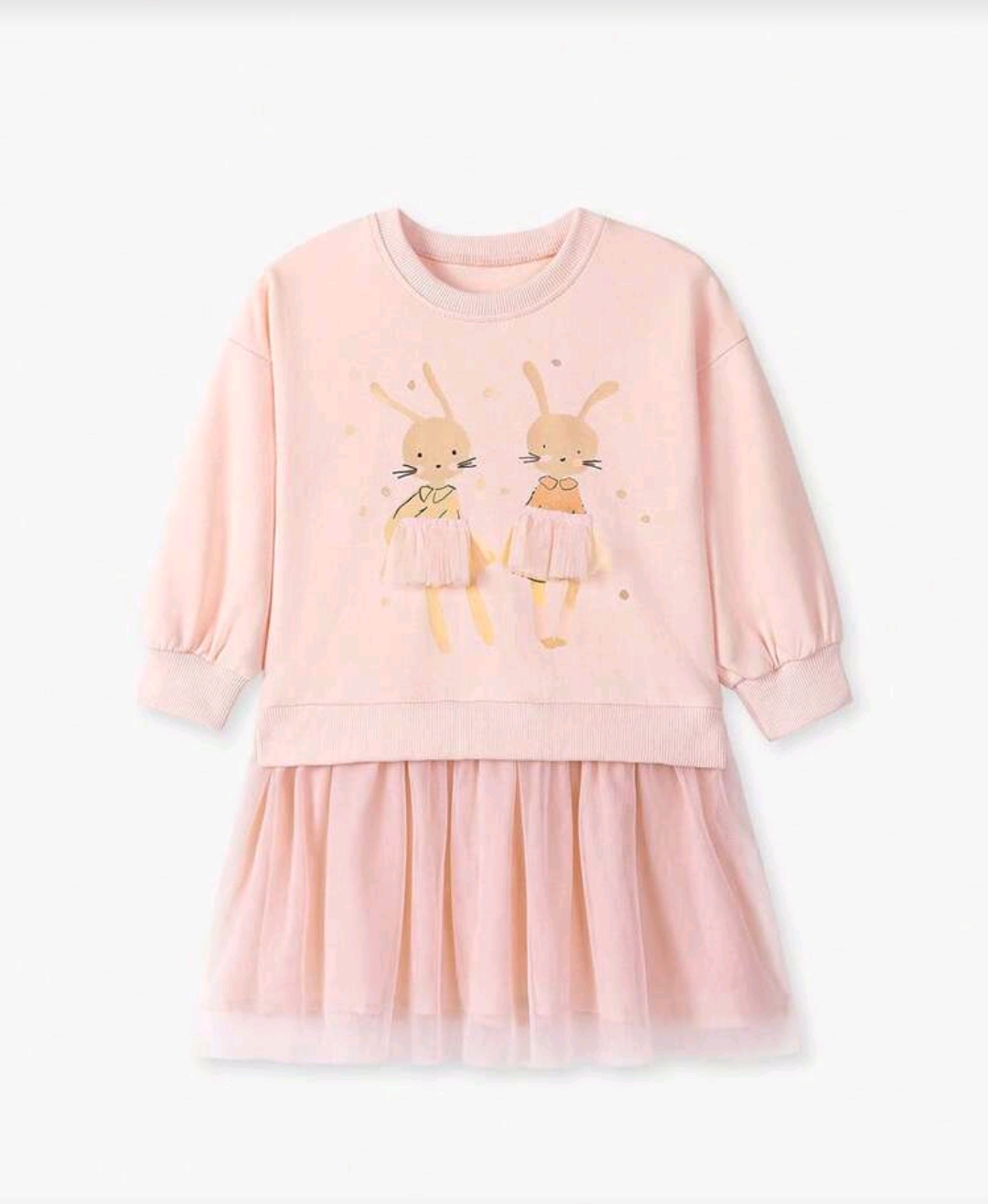 پیراهن آستین دار صورتی دامن تور