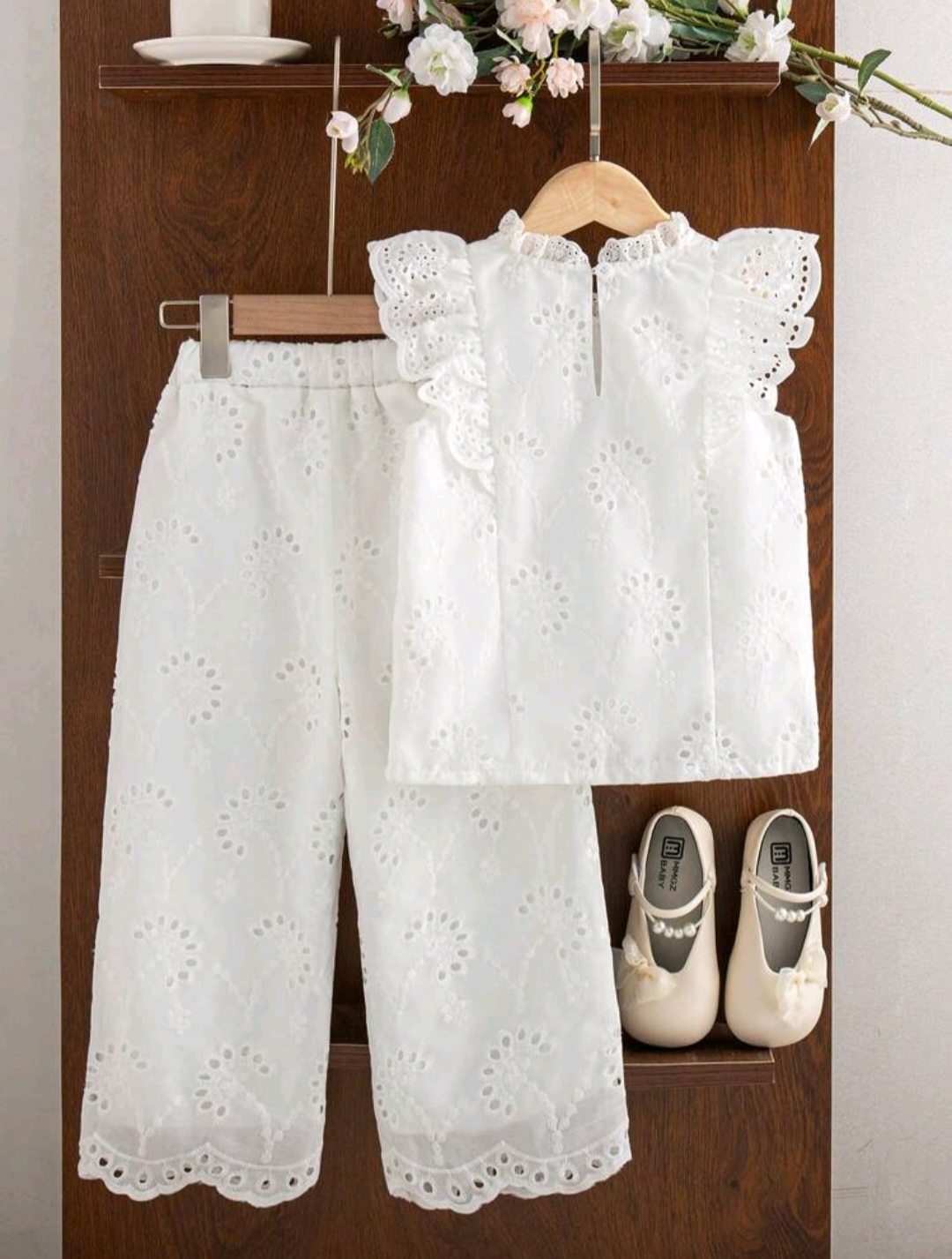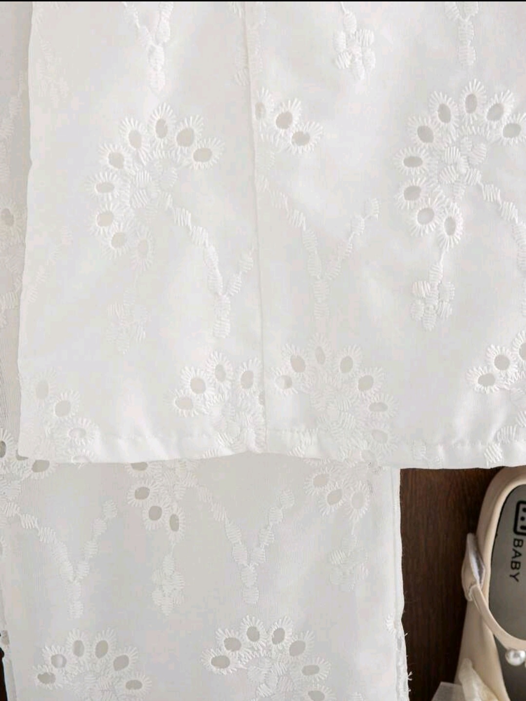 • ست تاپ و شلوار سفید خامه دوزی