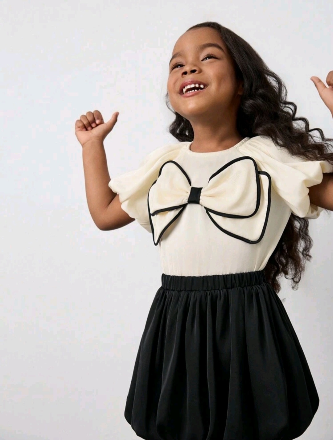 • ست بلوز کرم پاپیونی و دامن مشکی
